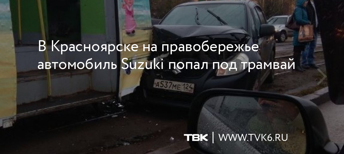 В Красноярске на правобережье автомобиль Suzuki попал под трамвай