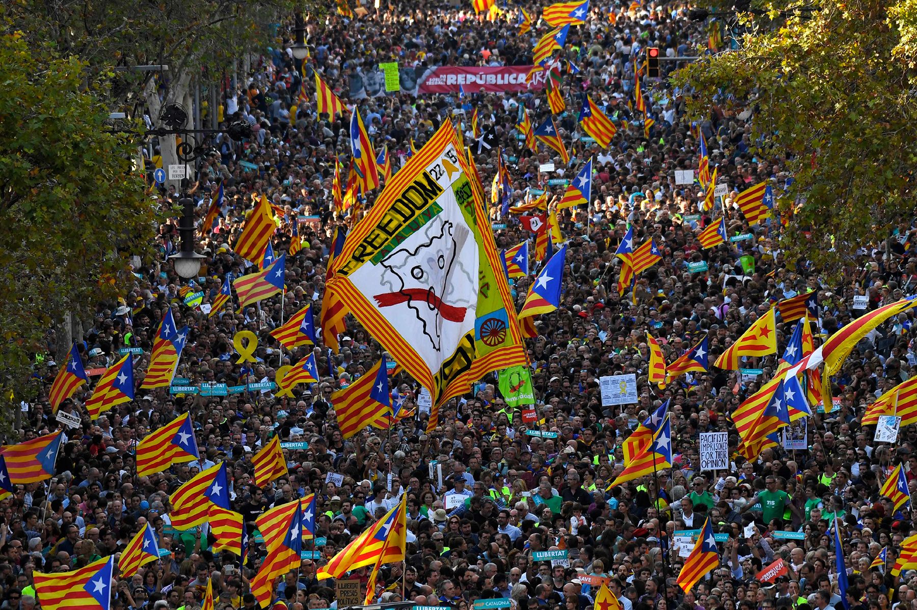 Lluis Gene / AFP / Scanpix / LETA 21 октября правительство Испании объявило, что отстранит от полномочий власти Каталонии. В ответ на это в Барселоне устроили многотысячный марш, который возглавил глава Каталонии Карлес Пучдемон.