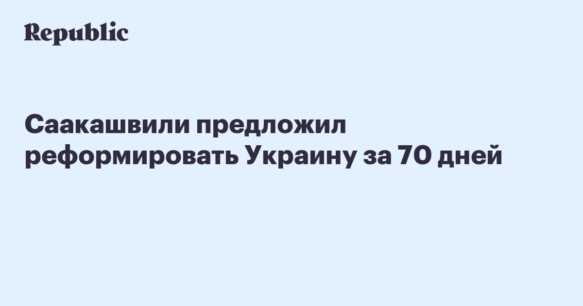 Бывший президент Грузии и экс-губернатор Одесской области Михаил Саакашвили предложил план, как реформировать Украину за 70 дней. Об этом сообщает корреспондент ТАСС из Киева, где около здания Верховной рады проходит протестная акция.