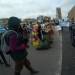 Акция сопровождалась костюмированным представлением и игрой на баках в качестве барабанов с участием афророссиян.