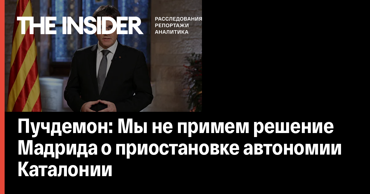 Жители Каталонии не примут решение правительства Испании о приостановке автономии и роспуске органов власти региона. Как сообщает Reuters, об этом заявил глава правительства Каталонии Карлес Пучдемон.