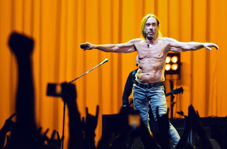 Игги Поп выскочил на сцену под оглушительный рифф «I Wanna Be Your Dog», одного из главных хитов его группы The Stooges. Как обычно, он был обнажен по пояс, так что были видны все особенности его анатомии. По его перекрученному телу и вихляющей походке было видно, что 70-летней легенде, вставшей на путь рок-н-ролльного саморазрушения еще в конце 1960-х, много довелось вынести и испытать, но это никак не сказалось на его неиссякаемой энергетике. С первых секунд московского концерта Игги Поп стал скакать по сцене как бешеная мумия (продержавшись в этом молодецком ритме полтора часа), и зал Stadium, набитый до отказа, мгновенно завелся и вспыхнул. Через минуту после начала шоу к пращуру панка подскочил его молодой имперсонатор из игравшей на разогреве группы «Продавцы-консультанты», такой же полуголый и волосатый, и попытался обнять, но рок-звезда технично ускользнула от столкновения, и неудачливого клона-поклонника уволок охранник. На третьей минуте Игги Поп вприпрыжку спустился в зрительный зал, отчего фан-зона метнулась с телефонами к заградительным барьерам и чуть не опрокинула их от восторга. На 9-й минуте, после другого хита Stooges «Gimme Danger», он с неподдельным чувством прокричал зрительному залу: «Фак! Фак! Фак! Спасибо! Фак!» Публика взревела, и Игги Поп завел почти русскую народную «The Passenger», во время которой он демонстрировал дурашливые танцы и пару раз игриво боднул бедром колонку, чуть ее не опрокинув. Чем напомнил о том, как во время второго приезда в Москву вместе с The Stooges в 2007-м его любимым развлечением во время концерта было имитировать секс с акустической системой.