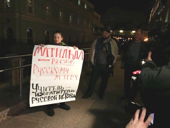 Как отмечает «Фонтанка», активисты движения «Весна» вышли в поддержку фильма. Перед входом в театр они развернули плакат, на котором говорилось об обещании «защитить от православия». Однако лидер движения «Народный Собор» в Петербурге и помощник депутата Госдумы Виталия Милонова подошел к активистам, смял и отобрал плакат.