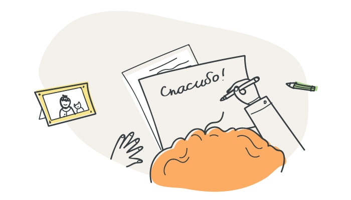 Здравствуй дорогой, родной мой человек! Спасибо тебе огромное за спасенную тобой мою жизнь. Ты спас не только меня, но и подарил моей дочке здоровую маму. Теперь у меня два дня рождения, даже три. Твой день рождения — 3 ноября, мой — 3 января и день пересадки. Сразу после пересадки всё было хорошо. И всё это время я думала о тебе. Сложно подобрать слова, чтобы выразить благодарность. Спасибо, спасибо, спасибо!