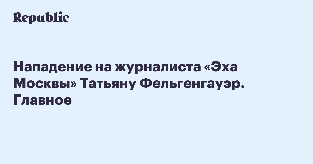 В Москве в редакции «Эха Москвы» напали на заместителя главного редактора радиостанции Татьяну Фельгенгауэр – ее ударили ножом. Сейчас ее жизни ничего не угрожает. Republic собрал все главные факты.