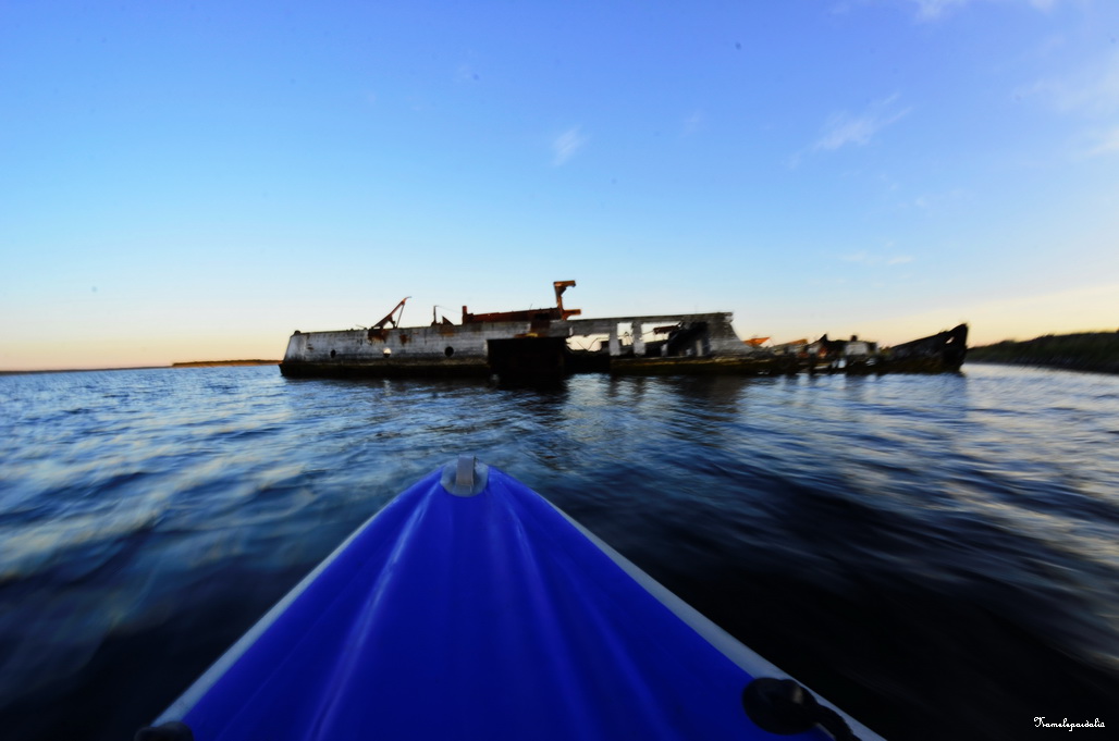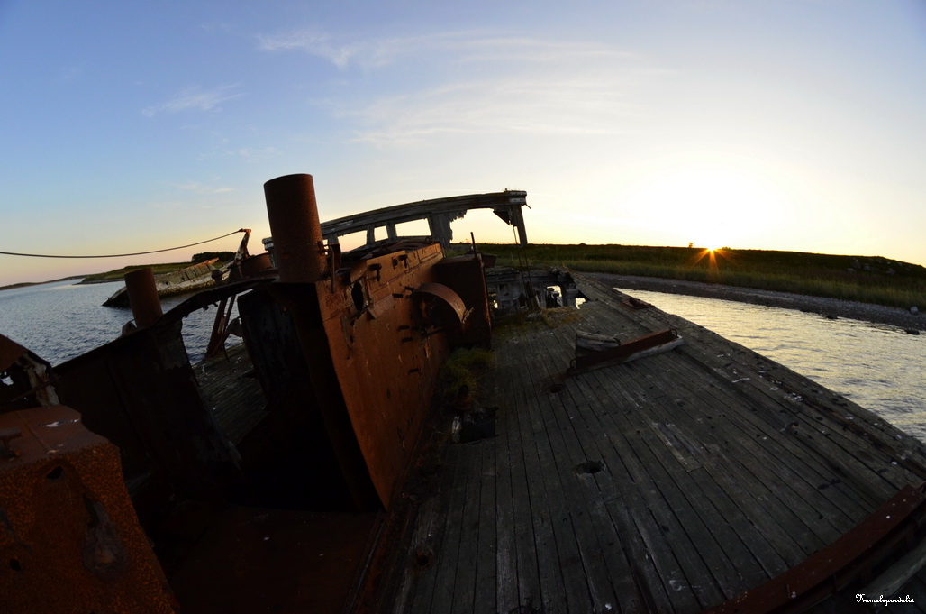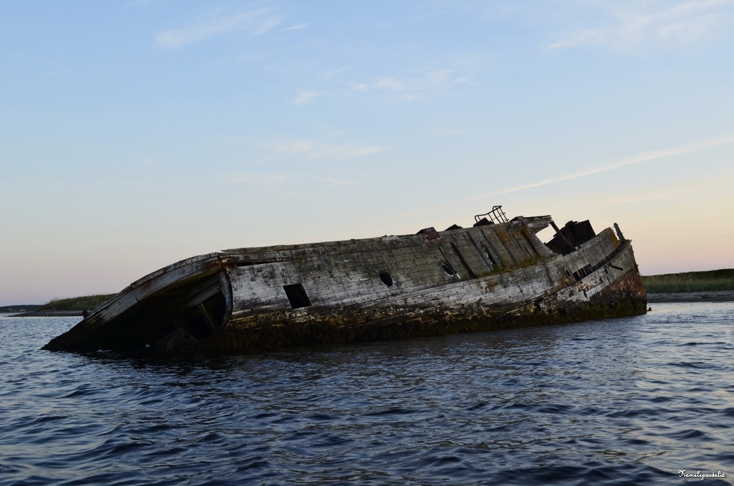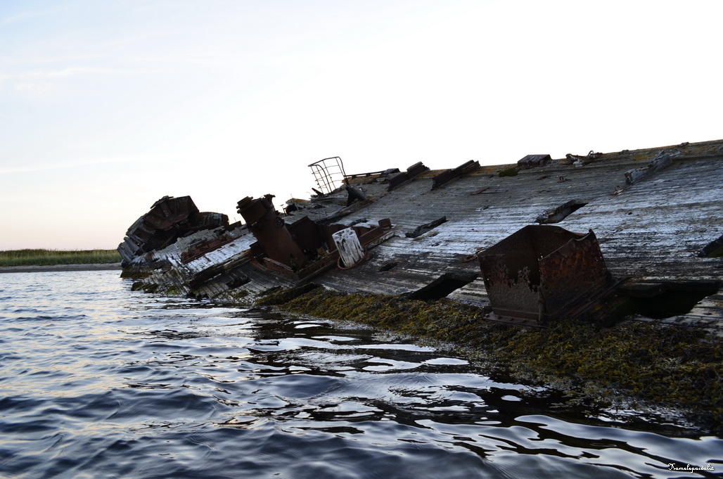Два остова таких судна есть у Сенных Луд. Их хорошо видно с Заяцкого острова. Мы ходили на Луды с Соловков на байдарке.