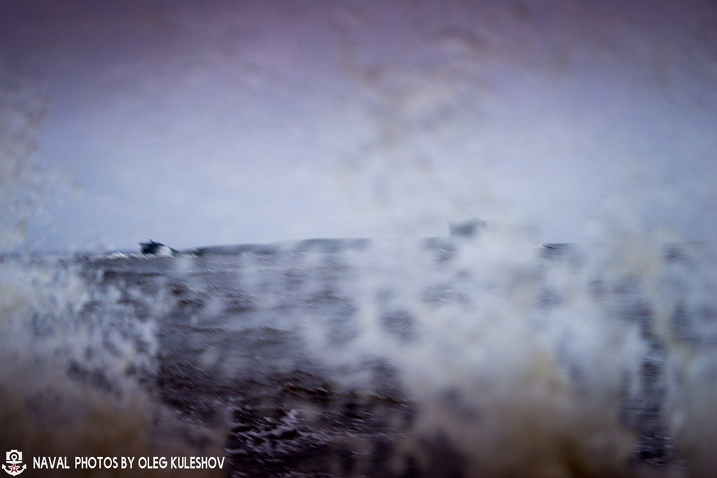 Сперва поймал новый буксир Беломорской военно-морской базы "Полярный конвой", который построен на ленинградском предприятии "Пелла" в 2017 году, а как только появилась рыба покрупней - атомная подводная лодка "Подмосковье", то тут же волны усилились, да ещё и снег пошёл. В итоге из ожидаемого большого фоторепортажа сделал только три фотографии подводной лодки. Ну а репортаж сногсшибательный в прямом смысле оказался. При съемке подлодки у самого края разбитого волнореза на меня постоянно накатывали волны и пытались меня повалить на землю. Последний снимок тому подтверждение.