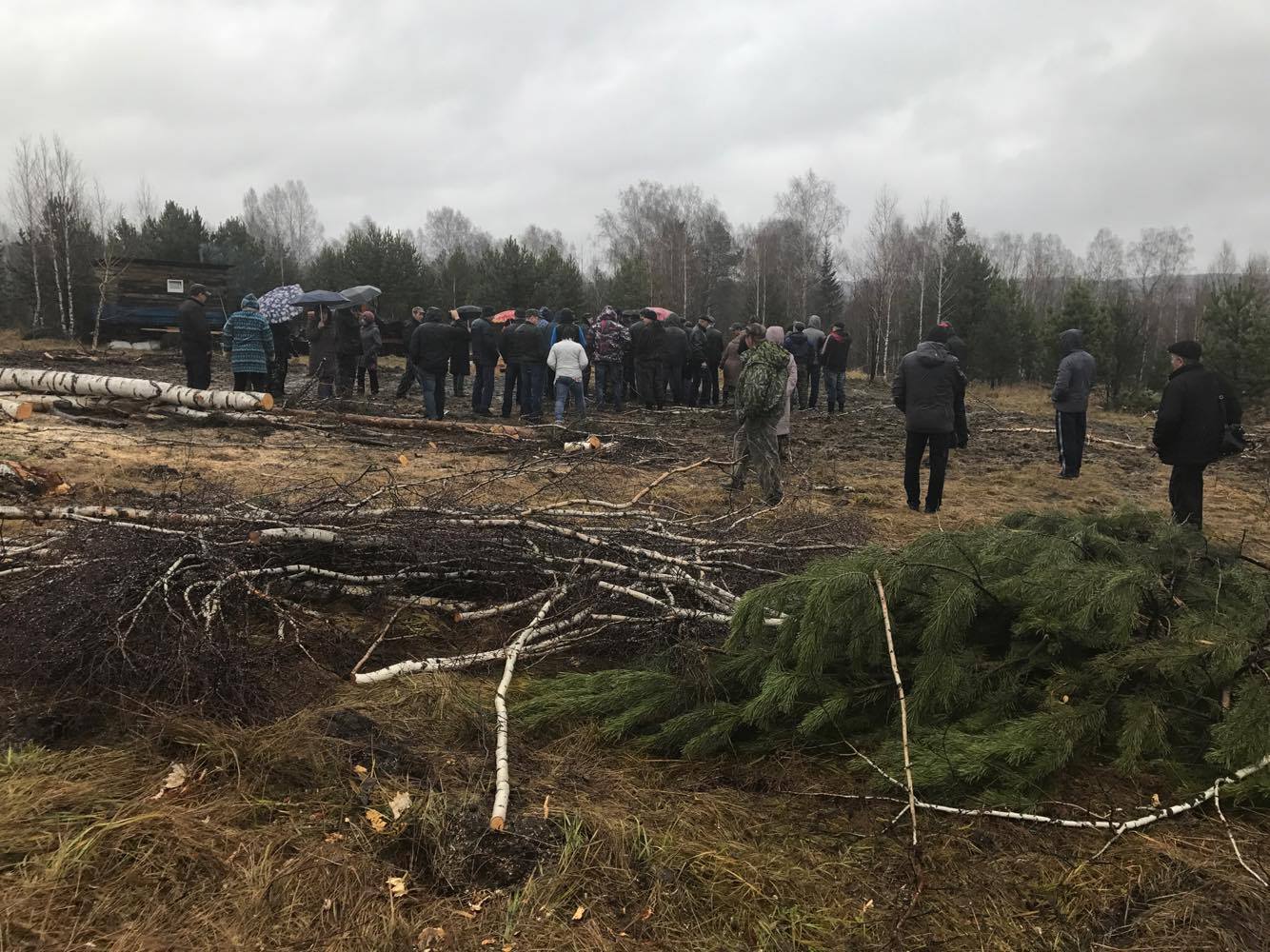 Собравшиеся составили коллективное обращение в полицию и прокуратуру по фактам вырубки леса. Кроме того, они требуют проверить законность продажи другого участка земли угольной компании, так как рядом находится скотомогильник с сибирской язвой.