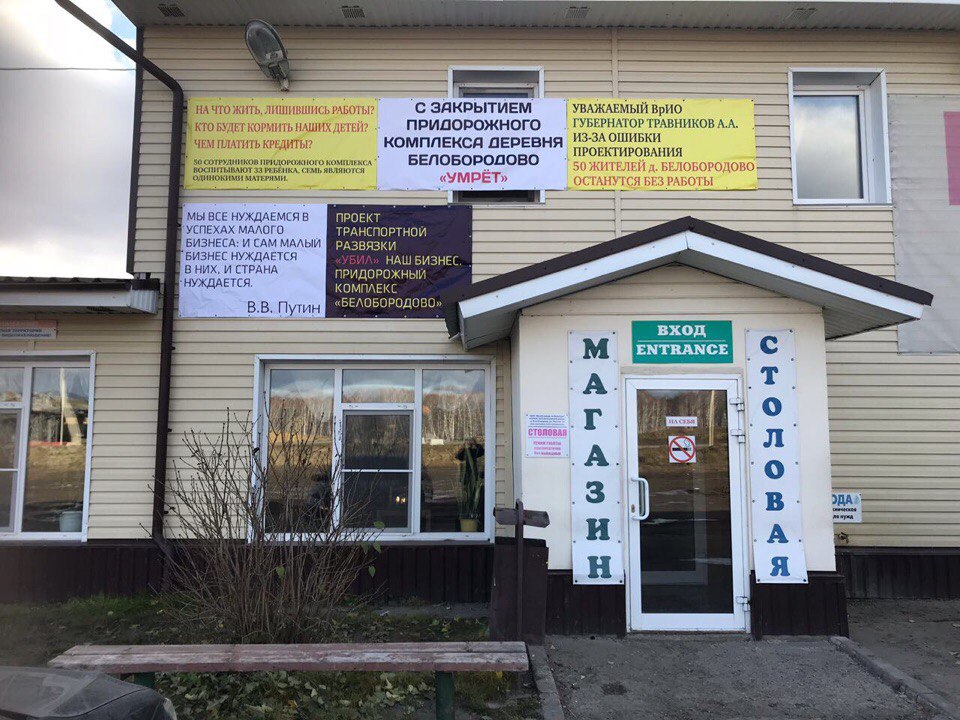 Директор и сотрудники придорожного комплекса считают действия дорожников произволом. Они уверены: строители специально делают все, чтобы бизнес нес убытки. После начала работ уже пришлось закрыть автомагазин и шиномонтаж. Оставшиеся гостиница, кафе, продуктовый магазин и баня практически пустуют. Стоянка площадью шесть гектаров вмещает 200-250 грузовых машин, но попасть на нее сегодня не возможно.