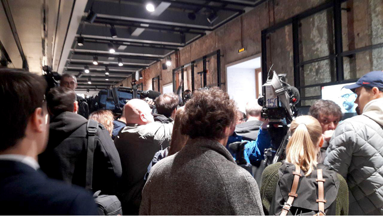 13:30 Толпа журналистов в фойе театра.