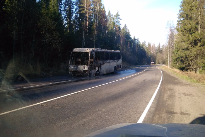 На трассе Светогорск — Петербург сгорел рейсовый автобус