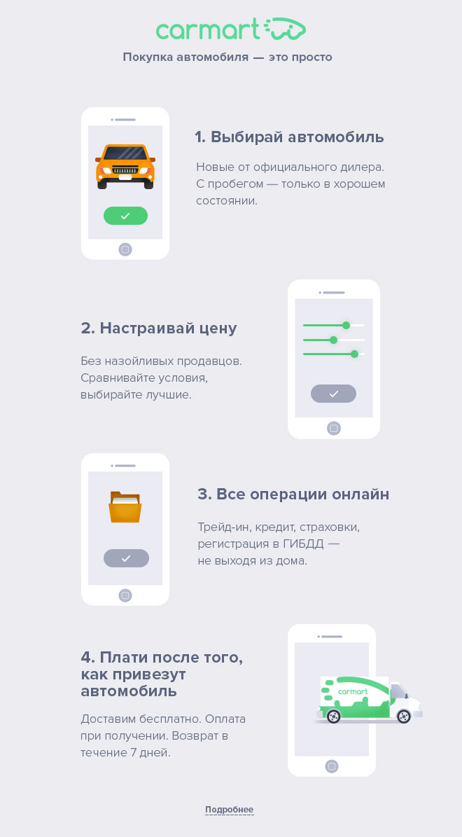 Кроме того, когда покупаешь машину, человеческий подход — редкая история. В случае с Carmart эмпатия вдруг возникла. Люди такого типа понимают: не надо врать, чтобы продать машину. Приятно, когда человек искренне отвечает на твои вопросы и раскрывает всю информацию.