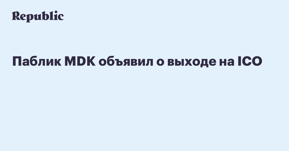 Паблик MDK объявил о выходе на ICO