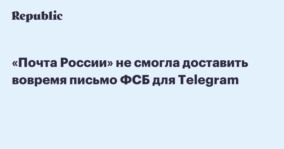 «Почта России» не смогла доставить вовремя письмо ФСБ для Telegram