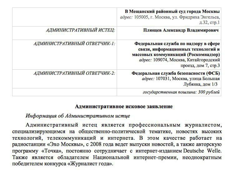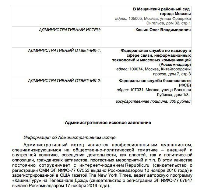 «Мы с Кашиным подаем судебные иски к ФСБ, возражая против требования предоставить ключи шифрования переписки. Мы считаем, что это затрагивает наше право на конфиденциальное общение с источниками информации. Интересы наши представляет "Агора"», — написал журналист.
