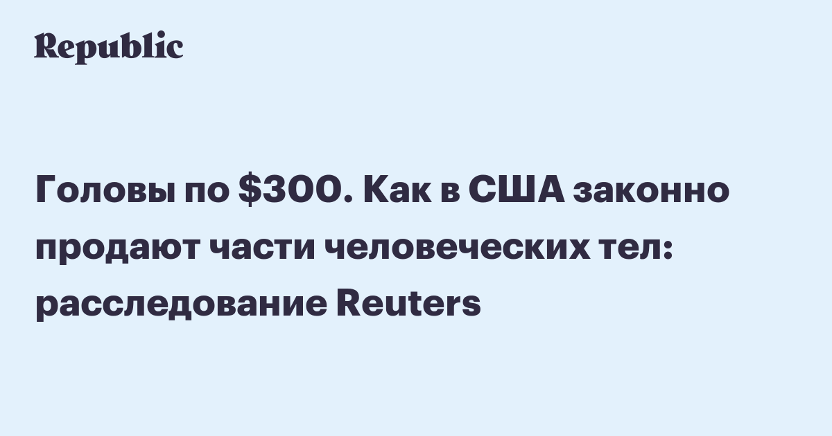 Агентство Reuters 24 и 25 октября опубликовало расследования о том, как в США работает рынок продажи человеческих тел. В них рассказывается, что в стране этот бизнес фактически не запрещен законом, а компании, которые занимаются им, зачастую обманывают своих клиентов. Republic собрал главное из этих текстов.