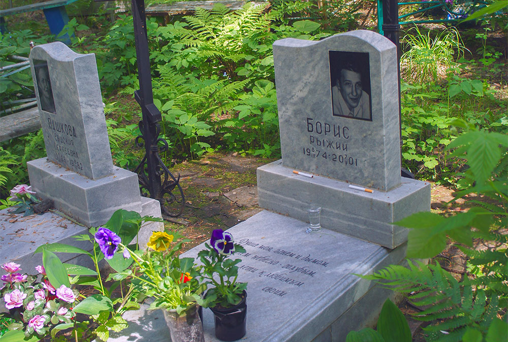 Свердловский поэт Борис Рыжий покончил с собой в возрасте 26 лет, оставив предсмертную записку: «Я всех любил. Без дураков». Рыжий похоронен на Нижнеисетском кладбище, секция 5A. Другие адреса в Екатеринбурге, связанные с памятью о Рыжем, находятся в районе Вторчермет. И музей «Литературная жизнь Урала XX века» проводит по ним экскурсию. Она включают в себя прогулку от трамвайной остановки «Переулок Рижский», затем идет к дому 44 по улице Титова, где жил поэт, к 108-й школе, где он учился, зданию бывшего кинотеатра «Южный», винным магазинам и так далее.