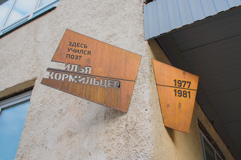 Мемориальный знак, похожий на «острую бритву» на стене института естественных наук УрФУ — дань памяти Илье Кормильцеву, поэту и переводчику, обучавшемуся здесь на химфаке с 1977 по 1981 год.