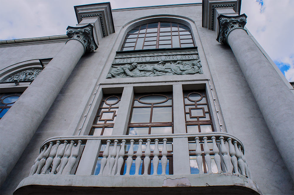 Когда-то в этом здании располагался Деловой клуб, где очень по-деловому восприняли новость о грядущем визите в Свердловск поэта Маяковского: заломили такую цену за аренду зала, что если бы не протекция случайно подвернувшегося Луначарского, Маяковский скорее всего отказался бы от выступления. 26 января 1928 года главный пролетарский поэт шагнул из вагона поезда на перрон Свердловского вокзала. На извозчике его увезли в гостиницу Ярмаркома (ныне не существующую) — и в тот же вечер состоялось первое выступление в Деловом клубе: чтение поэмы «Хорошо!». Прошло чтение тоже хорошо, и довольный Маяковский успел еще и поиграть на бильярде.