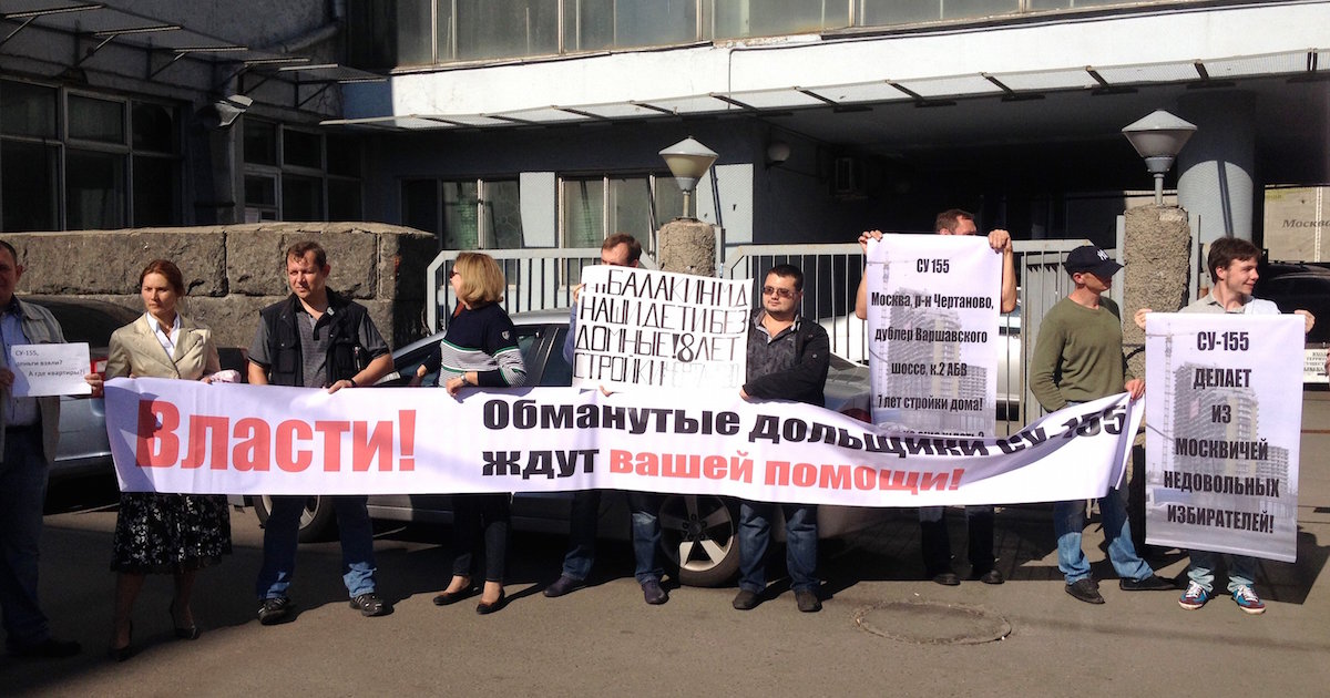 Митинг обманутых дольщиков Су-155 в 2014 году. Фото: АГН «Москва»