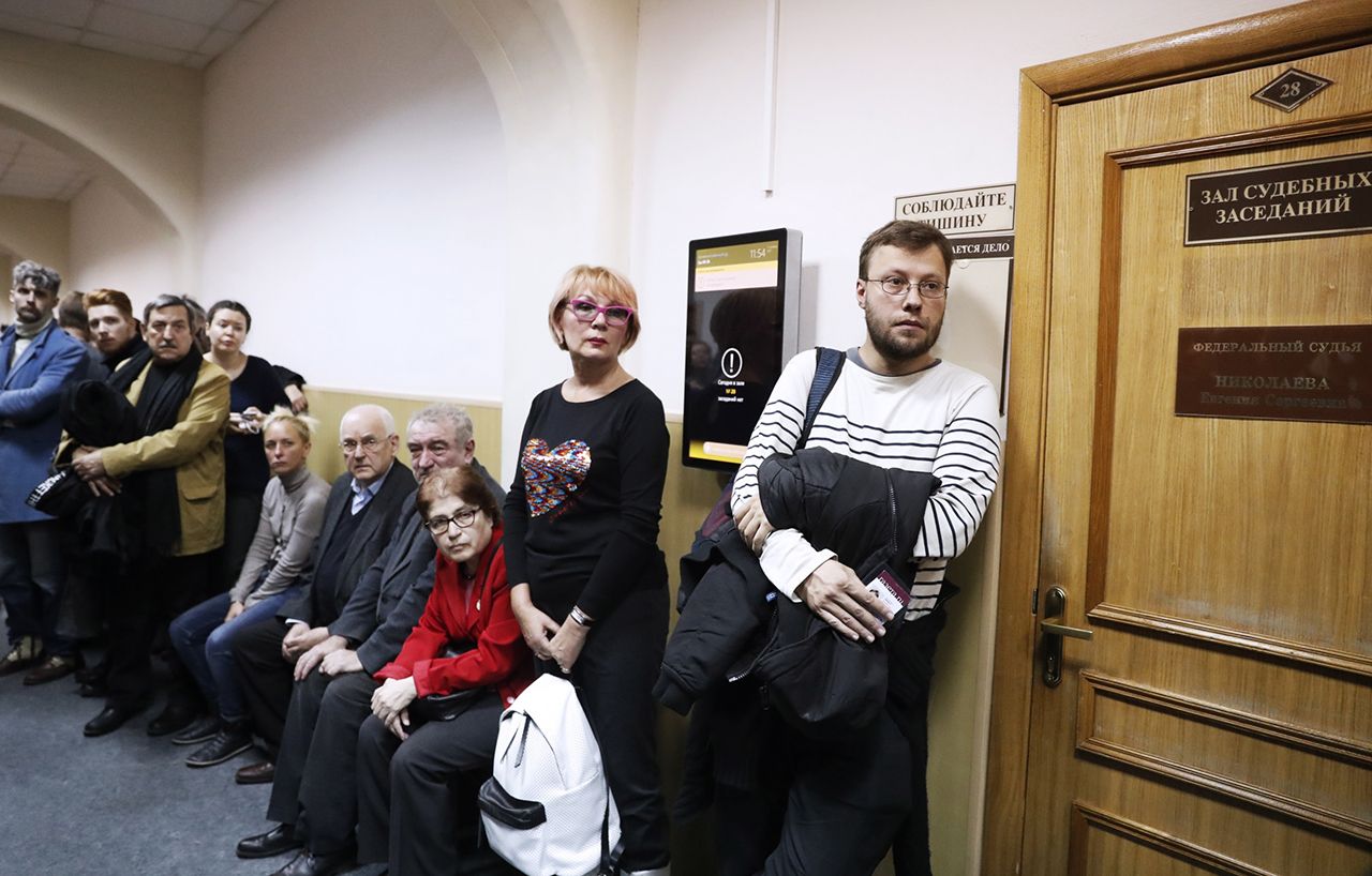 Перед тем как завести Софью Апфельбаум в зал, судебные приставы предупредили ее друзей о том, что в суде запрещено выкрикивать лозунги и аплодировать — и что за это полагается штраф.
