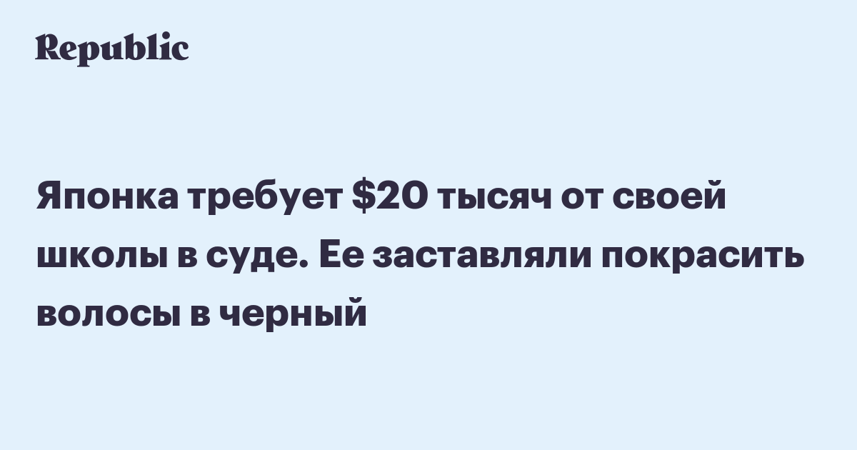 Ученица одной из школ в префектуре Осака подала иск к учебному заведению на 2,2 млн иен ($19,2 тысячи) за то, что администрация заставила покрасить ее волосы в черный цвет. Об этом пишет Quartz.