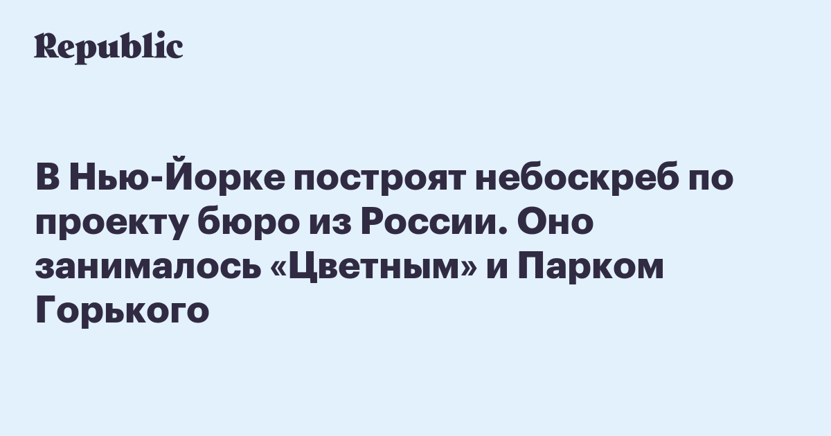 В Нью-Йорке построят небоскреб по проекту бюро из России. Оно занималось «Цветным» и Парком Горького