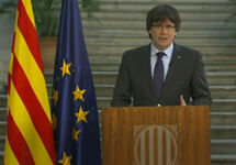 Пучдемон пообещал вести "демократическую борьбу" против статьи 155 конституции Испании, предусматривающей ввод прямого управления в регионе. Он записал обращение на фоне флагов Каталонии и Евросоюза. Местонахождение Пучдемона не раскрывается.
