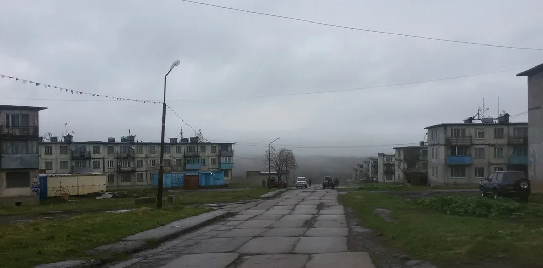 Если искать поселок Горное на военно-стратегической карте, сначала придется найти курильский остров Итуруп — на самом краю карты, справа. Потом — крошечный полумесяц залива Касатка — на краю Итурупа, последней границе мира, за которой тянется бескрайний, синий на карте, серо-стальной в реальности Тихий океан. И только потом — точку на юге залива Касатка — само Горное. Впрочем, на карте точку вы не найдете — потому что ее там нет. По легенде (в которую верят все местные), в 2005 году министр обороны Сергей Иванов прилетел на Итуруп с проверкой. Пролетая над Горным, он спросил, что это за унылые развалины внизу. «Это город-призрак. Там никто не живет», — не моргнув глазом, ответили ему, хотя в Горном тогда жило около тысячи человек. После этого поселок исчез с военных карт и из военных реестров. Там перестали ремонтировать дома, чистить и строить дороги, вывозить мусор.