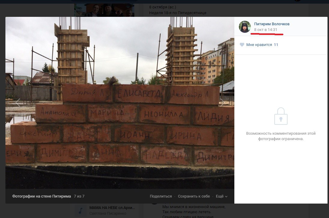 Однако просматривая фото Павлика Волочкова (Питирим) можно было заметить одну странность, кирпичики уже давно лежат…