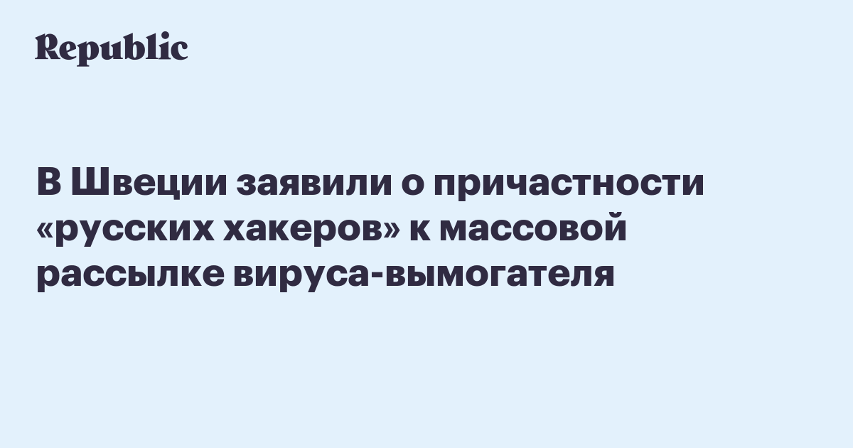 В Швеции заявили о причастности «русских хакеров» к массовой рассылке вируса-вымогателя