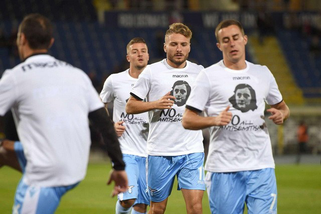 Футболисты «Лацио», вышедшие на предматчевую разминку в майках с портретом Анны и надписью «Нет антисемитизму», как и команды по всей Италии, стояли у центрального круга, склонив головы и обнявшись, а диктор зачитывал строки из предпоследней записи в дневнике Анны Франк