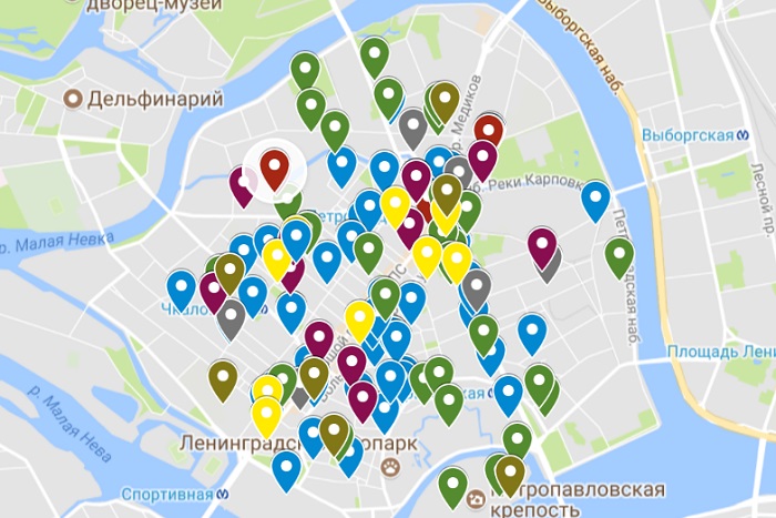 Онлайн-карта заведений на Петроградской, которую можно дополнять
