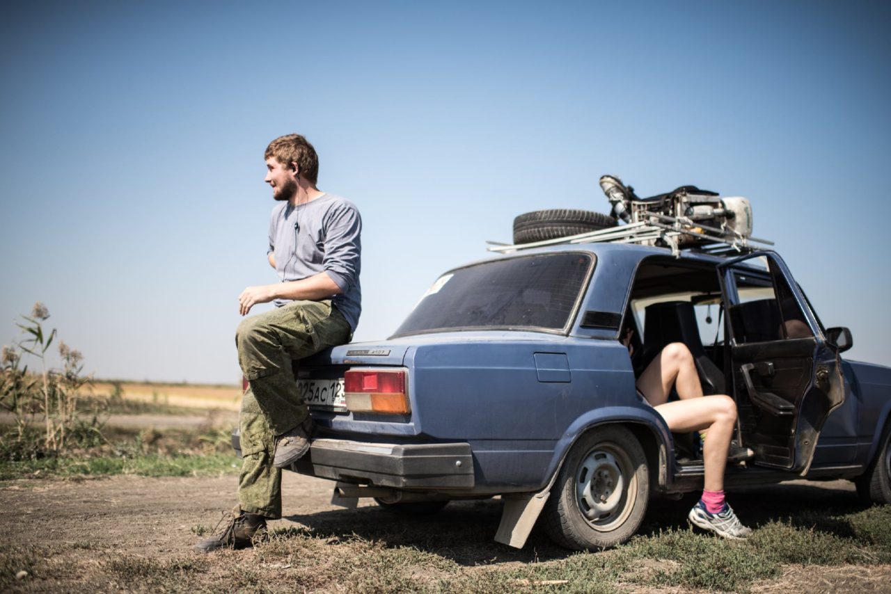 Роман, исчерпав запас воды в ранцевике, идет к машинеФото: Алина Десятниченко