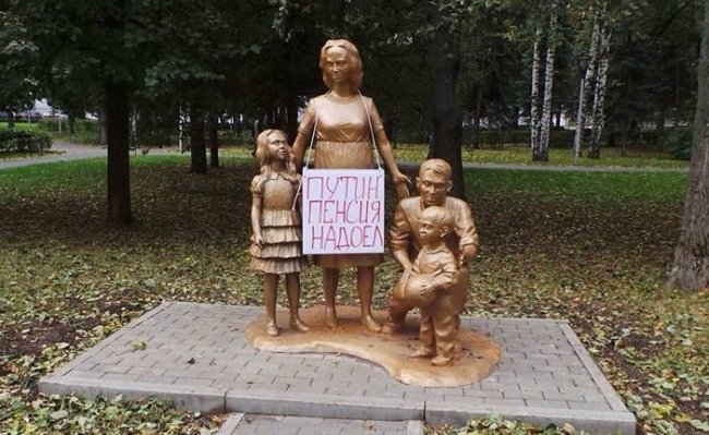 После процедуры выбивания из меня знаний процессуальных норм при задержании и статей Конституции люди в штатском пояснили мне, что поступил звонок о том, что якобы неизвестные люди перевозят и изготавливают по указанному адресу экстремистские материалы и оружие. Мусора в штатском сказали, что они из уголовного розыска, деревенские ребята в тактическом снаряжении (затрудняюсь определить их ведомственную принадлежность — ОМОН или кто-то еще) не представились. Все дружно стали разворачивать и изучать содержание баннера, который я выносил со склада. Он был большой, шесть на три метра, хотя позже в протокол они записали шесть на четыре, с текстом «Путину 65. 17 лет у власти. Пора на пенсию. Надоел».