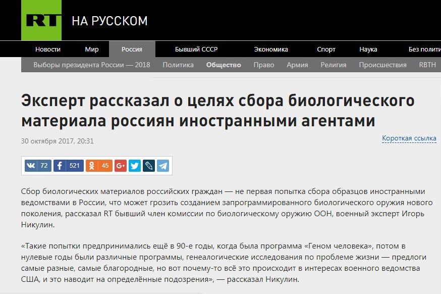 RT Судя по всему, глава государства действительно часто думает об этих биологических образцах — раз он вспомнил о них не совсем к месту. Откуда президент вообще знает об этой теме — совершенно отдельный разговор.