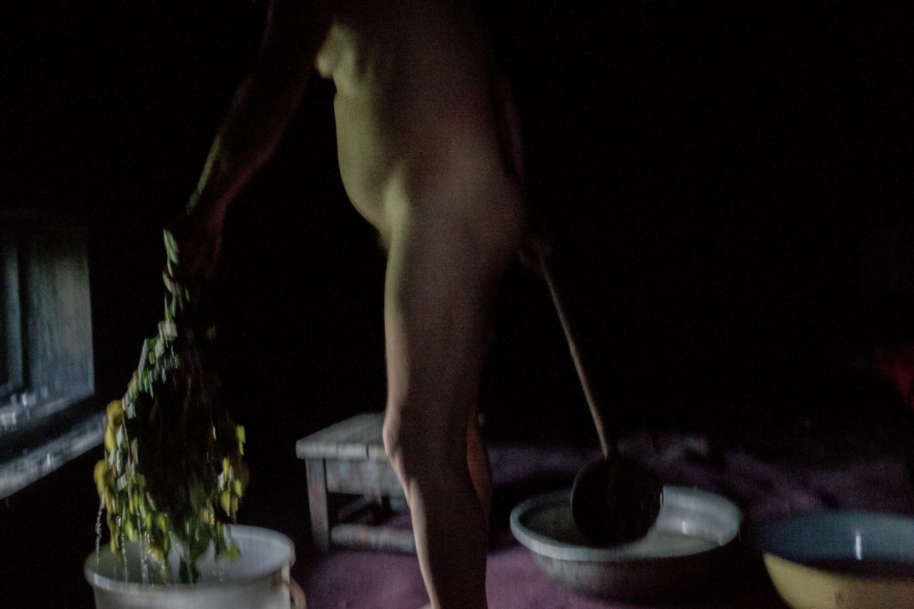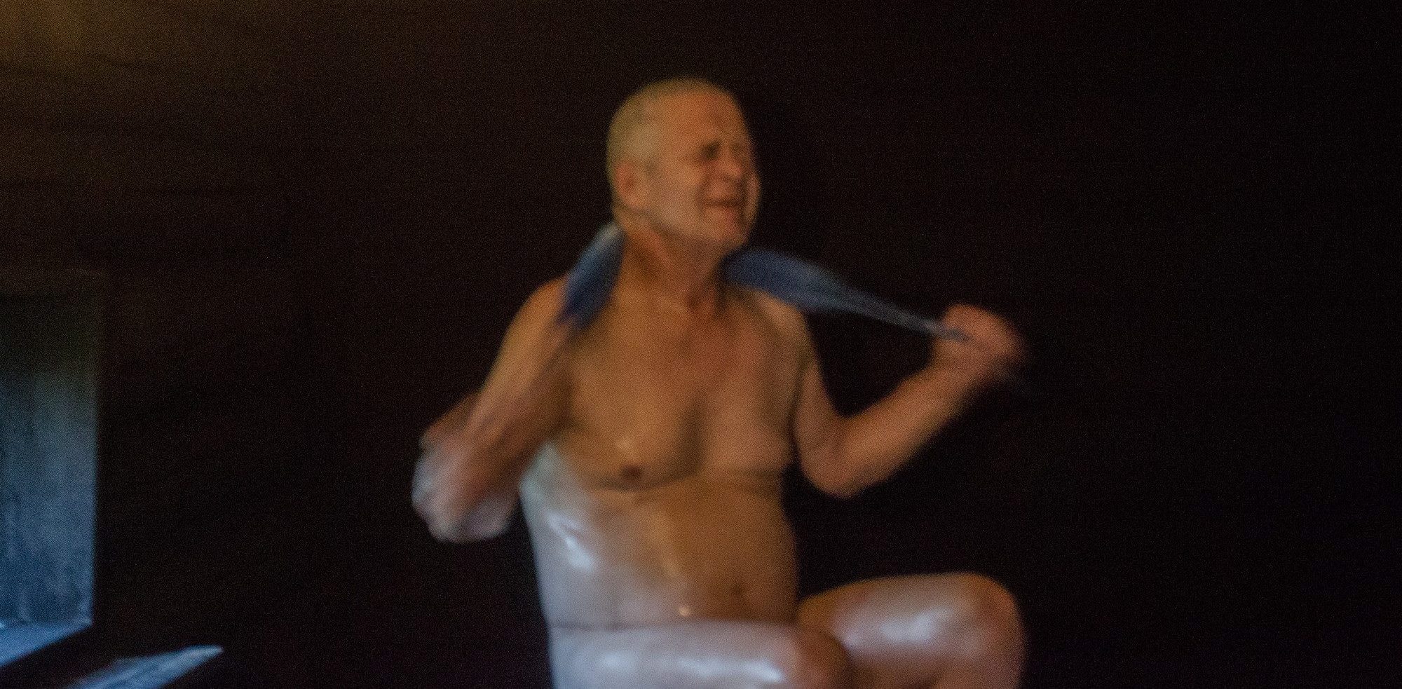 Саша рядом с тазом с бельем в бане рассуждает о бренности бытияФото: Михаил Доможилов для ТД В Калевале у Саши есть дом, но там его никто не ждет. Первую жену зарезал сын. Случайно. Вечером он ножом открывал на двери тугую щеколду, а мать в это время хотела открыть дверь с другой стороны и напоролась на лезвие. Сын этого пережить не смог, повесился. Саша долго был один, но женился снова. Жене ампутировали ногу, и во время операции у нее остановилось сердце. С тех пор он пьет и работает, пьет и работает. А больше ничего и не хочется.