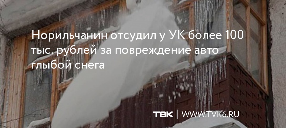 Норильчанин отсудил у УК более 100 тыс. рублей за повреждение авто глыбой снега