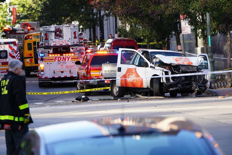 Днем во вторник, 31 октября, около 15:05 по местному времени, водитель белого фургона целенаправленно выехал на велосипедную дорожку на Вест-стрит и проехал 20 кварталов, сбивая людей. Водитель остановился, врезавшись в желтый школьный автобус, который выезжал с соседней улицы. После этого преступник выбежал из машины с криками «Аллаху Акбар», держа в руках пейнтбольное ружье и травматический пистолет.