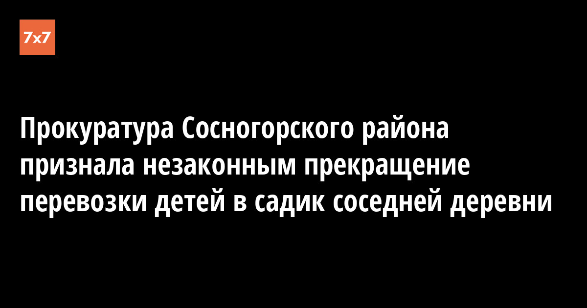 Прокуратура Сосногорского района признала решение управления образования администрации района о прекращении перевозок детей из поселка Поляна в детский сад деревни Пожня незаконным и необоснованным. Об этом 31 октября сообщила пресс-служба отделения ОНФ в Коми, которое обратилось в надзорный орган с просьбой организовать проверку.