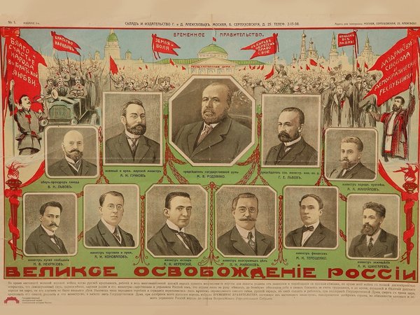 Плакат "Великое освобождение России". Москва, 1917 ГЦМСИР 7 ноября (25 октября по старому стилю) исполняется сто лет российской революции, которая позже получила название Великой Октябрьской. В результате нее Временное правительство, управлявшее страной после Февральской революции, было свергнуто и власть перешла к большевикам, провозгласившим ликвидацию капитализма и начало перехода к социализму.