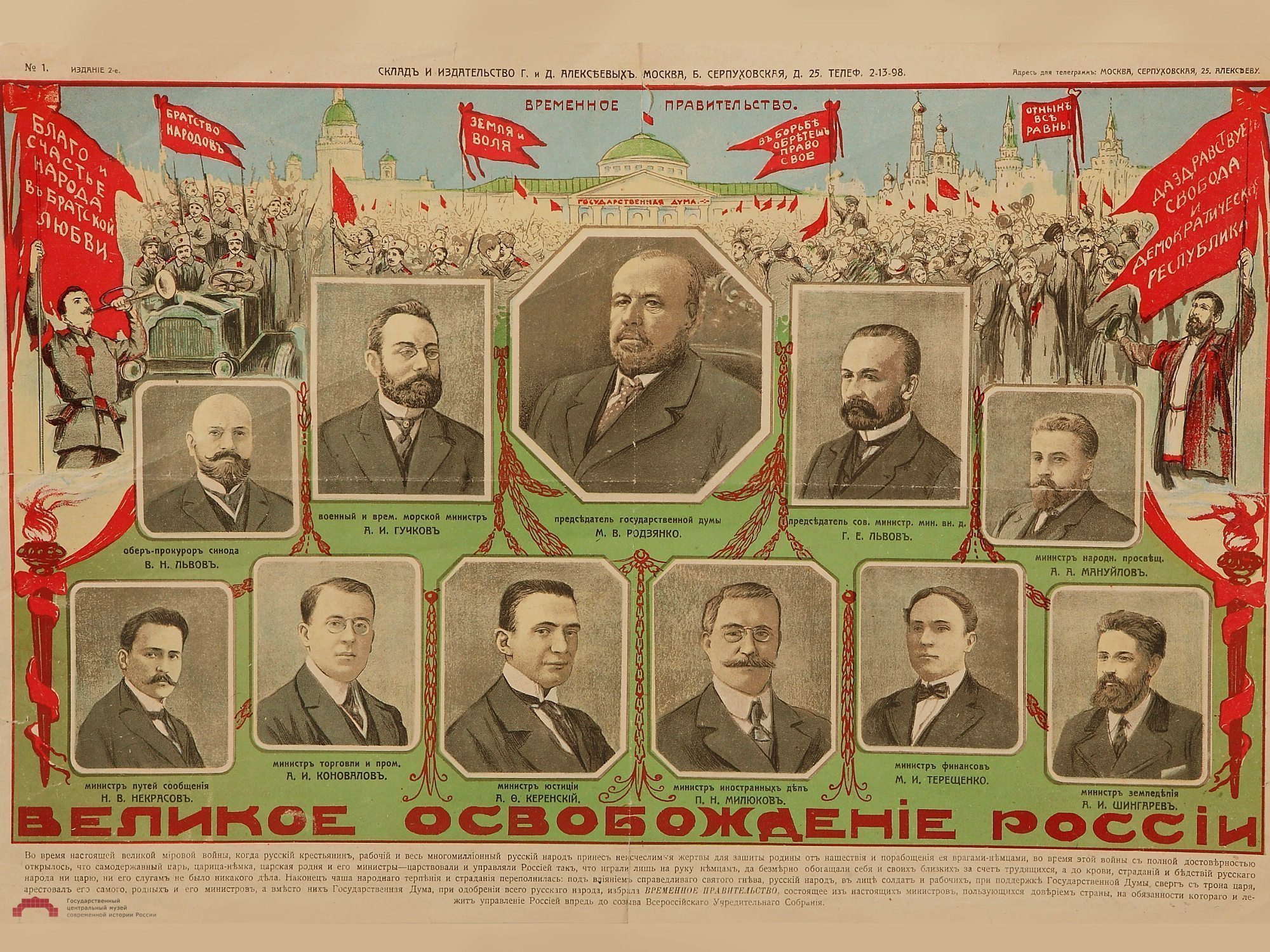 Еще ключевые фигуры – это, конечно, деятели Временного правительства: Милюков, Гучков, князь Львов, первый министр, председатель правительства Керенский. Обычно о них говорят как о неудачниках, «лузерах», как выражаются мои студенты, но на деле это не так: это было самое подготовленное к практической деятельности поколение русских интеллектуалов. Были и Земства, местное самоуправление; была и Государственная Дума, и различные общественные организации. И тем не менее, они не смогли удержать корабль, который попал в шторм.