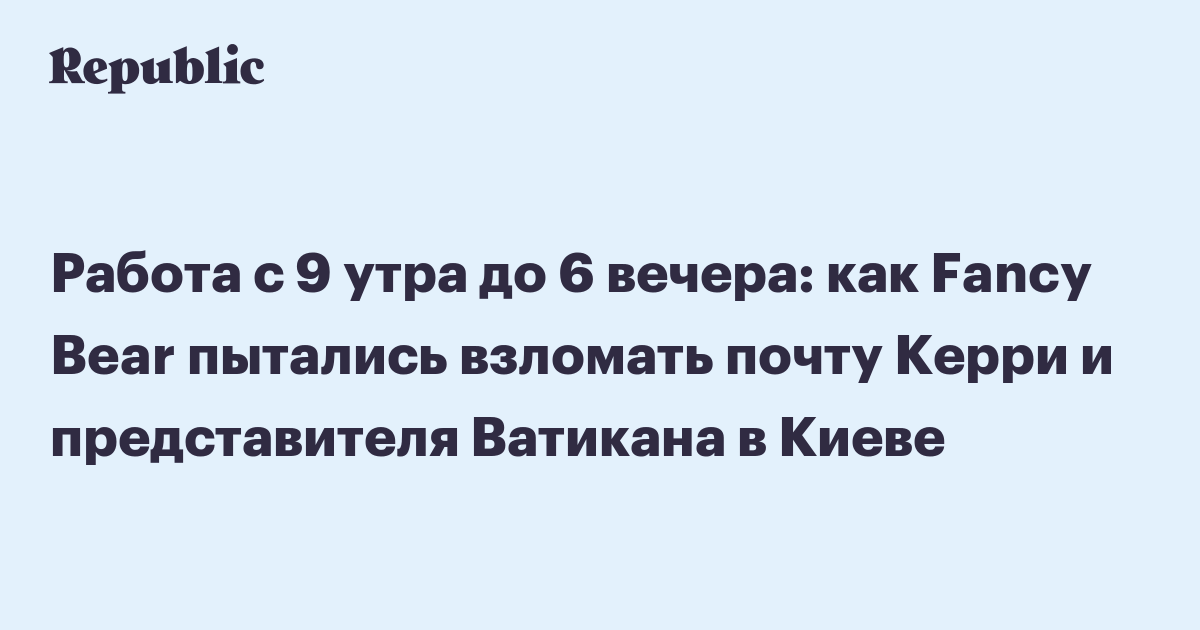 Работа с 9 утра до 6 вечера: как Fancy Bear пытались взломать почту Керри и представителя Ватикана в Киеве