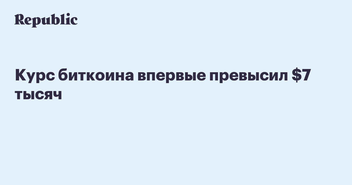 Стоимость биткоина впервые превысила $7 тысяч, пишет Bloomberg.