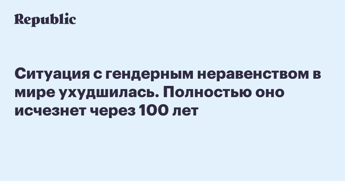 Ситуация с гендерным неравенством в мире ухудшилась. Полностью оно исчезнет через 100 лет