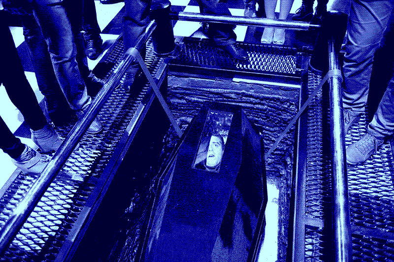 Посетители акции «Ночь в музее» на выставке «Страшная сказка на ночь» в Музее мировой погребальной культуры, расположенном на территории Новосибирского крематорияФото: Александр Кряжев/РИА Новости О смерти не говорят, ее боятся и отодвигают, ограждают детей от опыта встречи с ней. Поэтому человек, потерявший близкого, неожиданно оказывается в чистилище постсоветских ритуальных практик, где можно быстро выбрать гроб модели «Луч», «Елка», «Бабочка» или, например, «Наполеон». Черные ленты на венки от 200 рублей с золотыми надписями «От коллектива со скорбью», «От любящих дочери и зятя» или «Мир праху твоему!», штампованные кресты, пластмассовые цветы. Оплатили «косметику» в морге — и вот в гробу «Гжель» на атласной подушке в оборках, с бумажным венчиком на лбу лежит стандартное тело, отчужденное от семьи, друзей и от своей прижизненной эстетики. Такая посмертная победа общественного над личным, социума над индивидом.