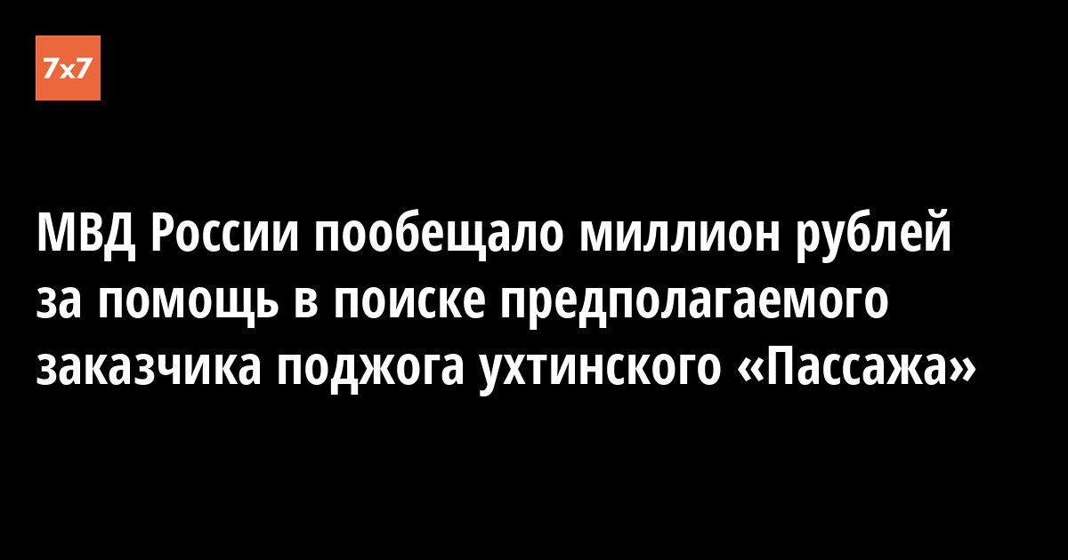 МВД России пообещало миллион рублей за помощь в поиске предполагаемого заказчика поджога ухтинского «Пассажа»