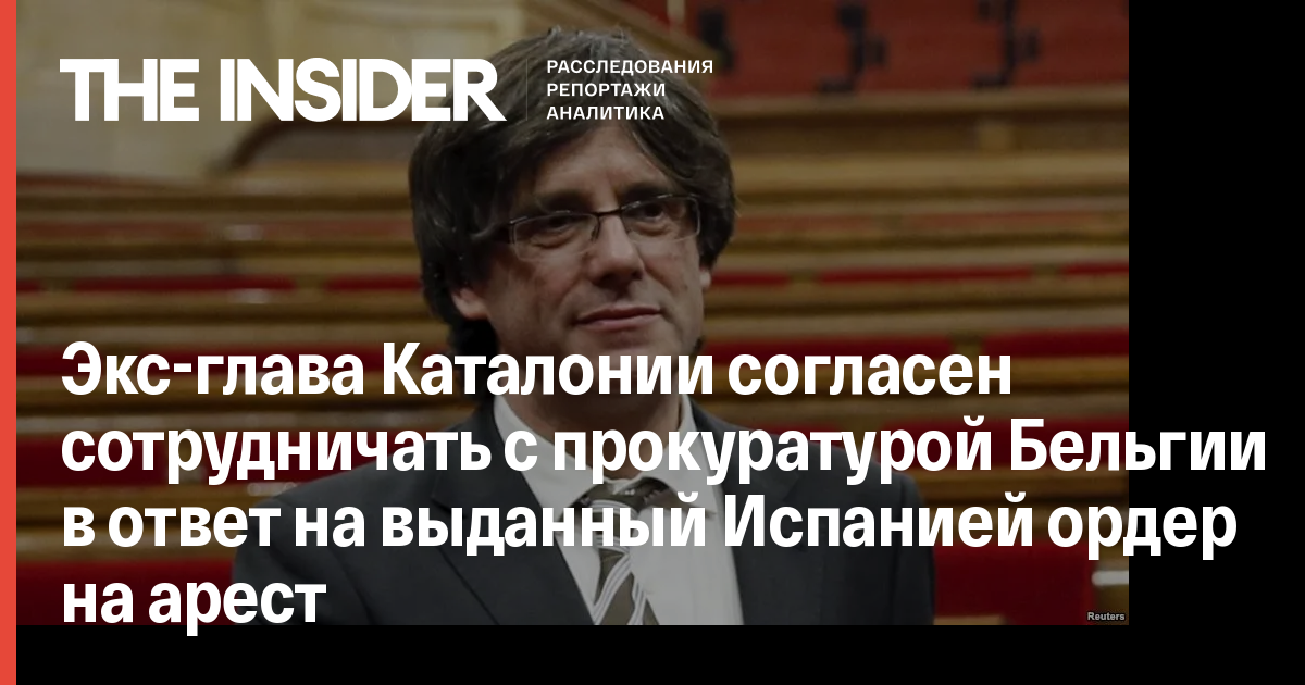 Экс-глава Каталонии согласен сотрудничать с прокуратурой Бельгии в ответ на выданный Испанией ордер на арест