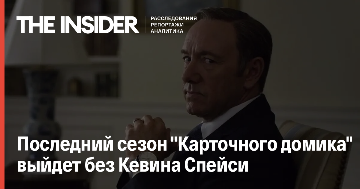 Компания Netflix объявила о прекращении сотрудничества с актером Кевином Спейси, сообщает The Verge. Он не будет участвовать в съемках последнего сезона «Карточного домика». Производство других связанных с актером проектов будет остановлено.