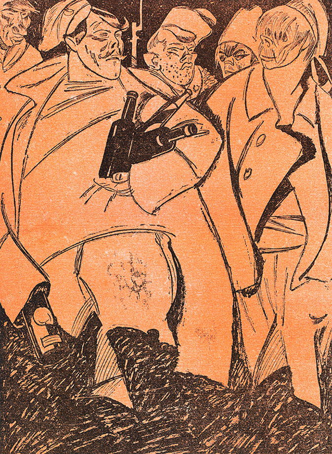 Карикатурами на Ленина и Троцкого пестрят все небольшевистские газеты. Троцкого больше. Ленина — до 25 октября — даже иногда не могут узнать под инициалами «Н.Л.» А после переворота одна из газет помещает заметку о том, что «большевики, овладев контрразведкой, первым делом бросились к делу Ленина, которое и было ими похищено»… Что волнует после петроградских и московских событий, так это сохранность дворцов, памятников и прочих ценностей. Сначала газеты волнуются, публикуют сообщения о разгроме в императорских апартаментах Зимнего, о пробоинах в куполах храма Василия Блаженного, но потом успокаиваются, тем более что многие ценности были вывезены из дворцов… на выставки! Выставки работают в семнадцатом году. И не только «Бубнового валета», например, что вполне рифмуется с революцией, но и вполне «буржуазные», архаичные.